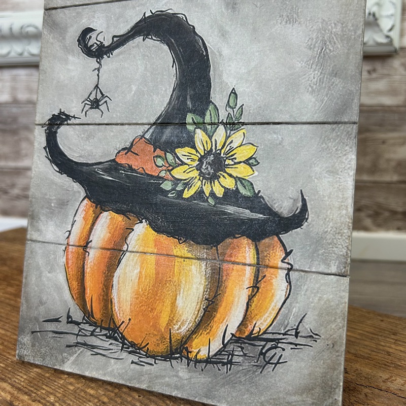 This adorable free standing picture has been decoupaged with the Toil & Trouble image from Connie Lines and Designs.